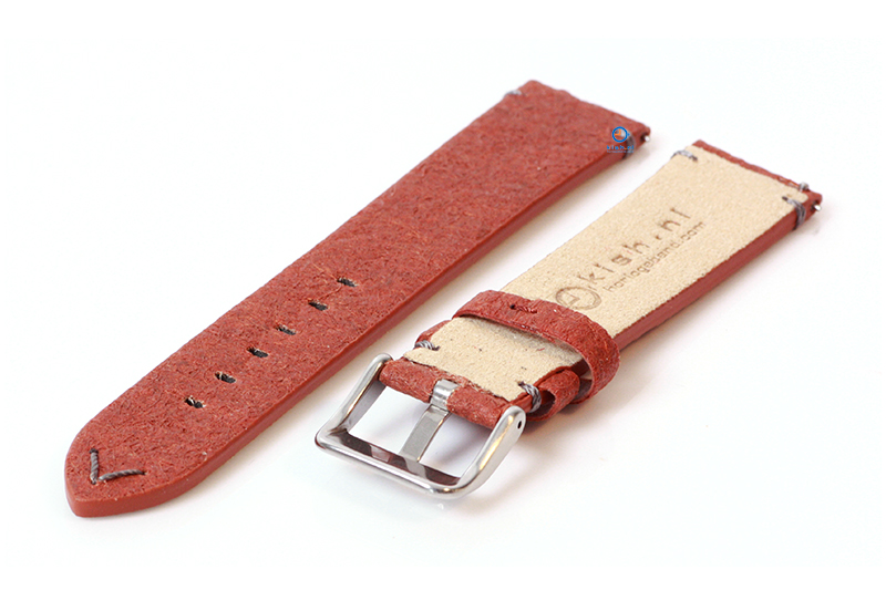 Vegan horlogeband 20mm bruin. Deze veganistische horlogeband is gemaakt van ananasblad, een duurzaam alternatief voor leer. Het gebruik van ananasblad geeft deze handgemaakte horlogeband een unieke uitstraling. Dit horlogebandje behoort tot onze Premium-collectie. In deze collectie staan kwaliteit en duurzaamheid op nummer 1, waardoor de levensduur extra lang is.