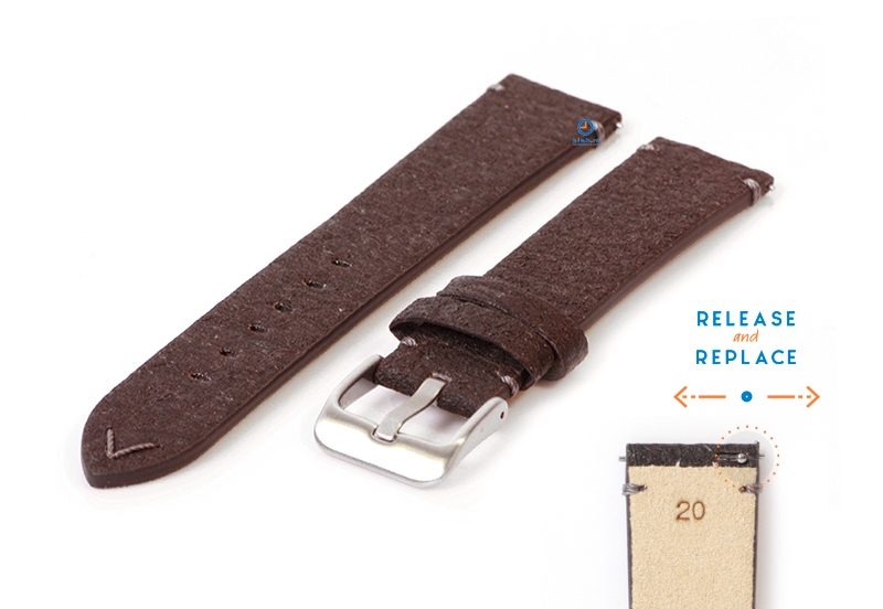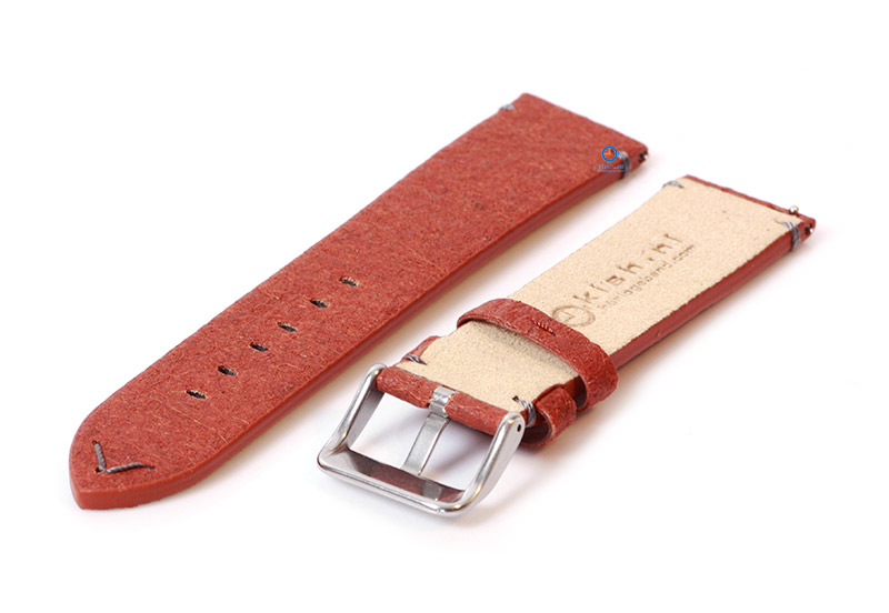 Vegan horlogeband 22mm bruin. Deze veganistische horlogeband is gemaakt van ananasblad, een duurzaam alternatief voor leer. Het gebruik van ananasblad geeft deze handgemaakte horlogeband een unieke uitstraling. Dit horlogebandje behoort tot onze Premium-collectie. In deze collectie staan kwaliteit en duurzaamheid op nummer 1, waardoor de levensduur extra lang is.