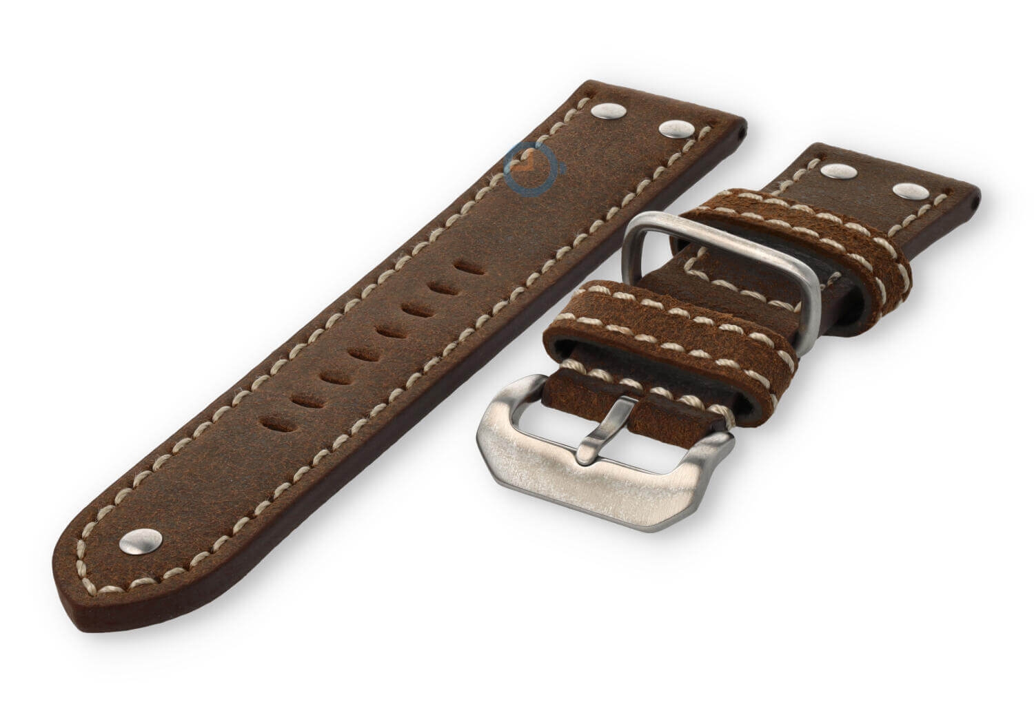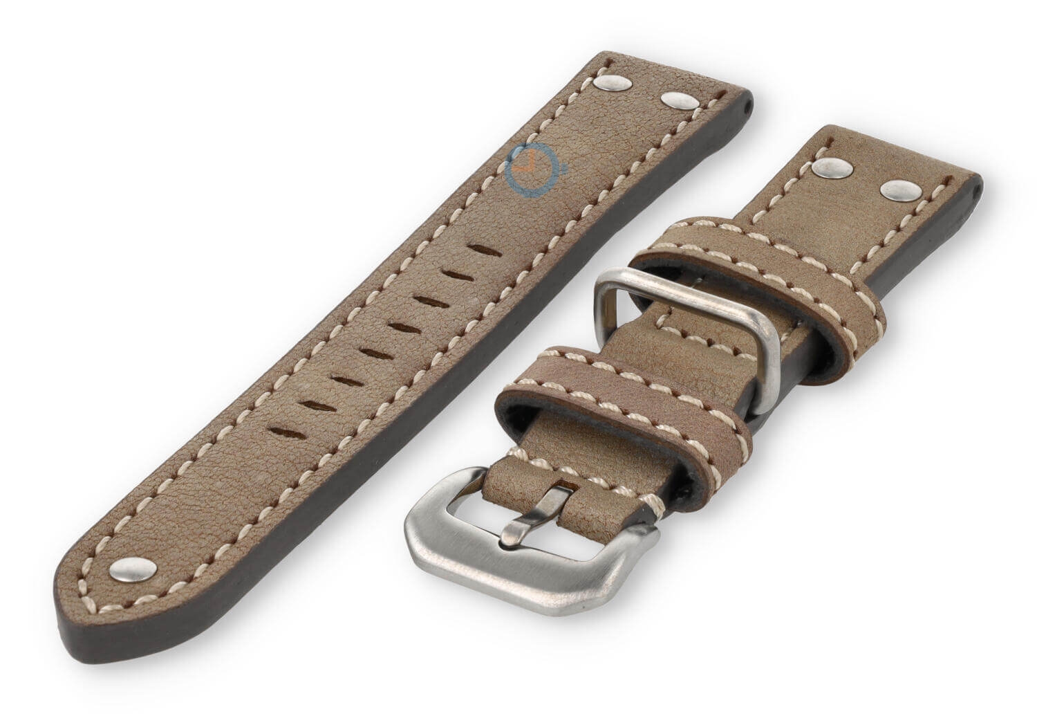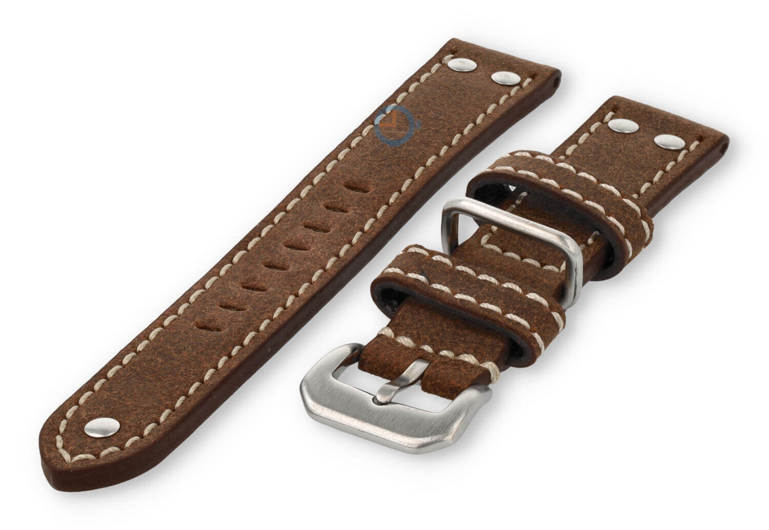 De horlogeband heeft maarliefst 3 lugs. Twee van leer en ?n van staal. Hierdoor blijft de band altijd op z'n plek tijdens het dragen. De band heeft ook gave staalnieten van roestvrijstaal, voor die echte vintage Flieger-stijl.