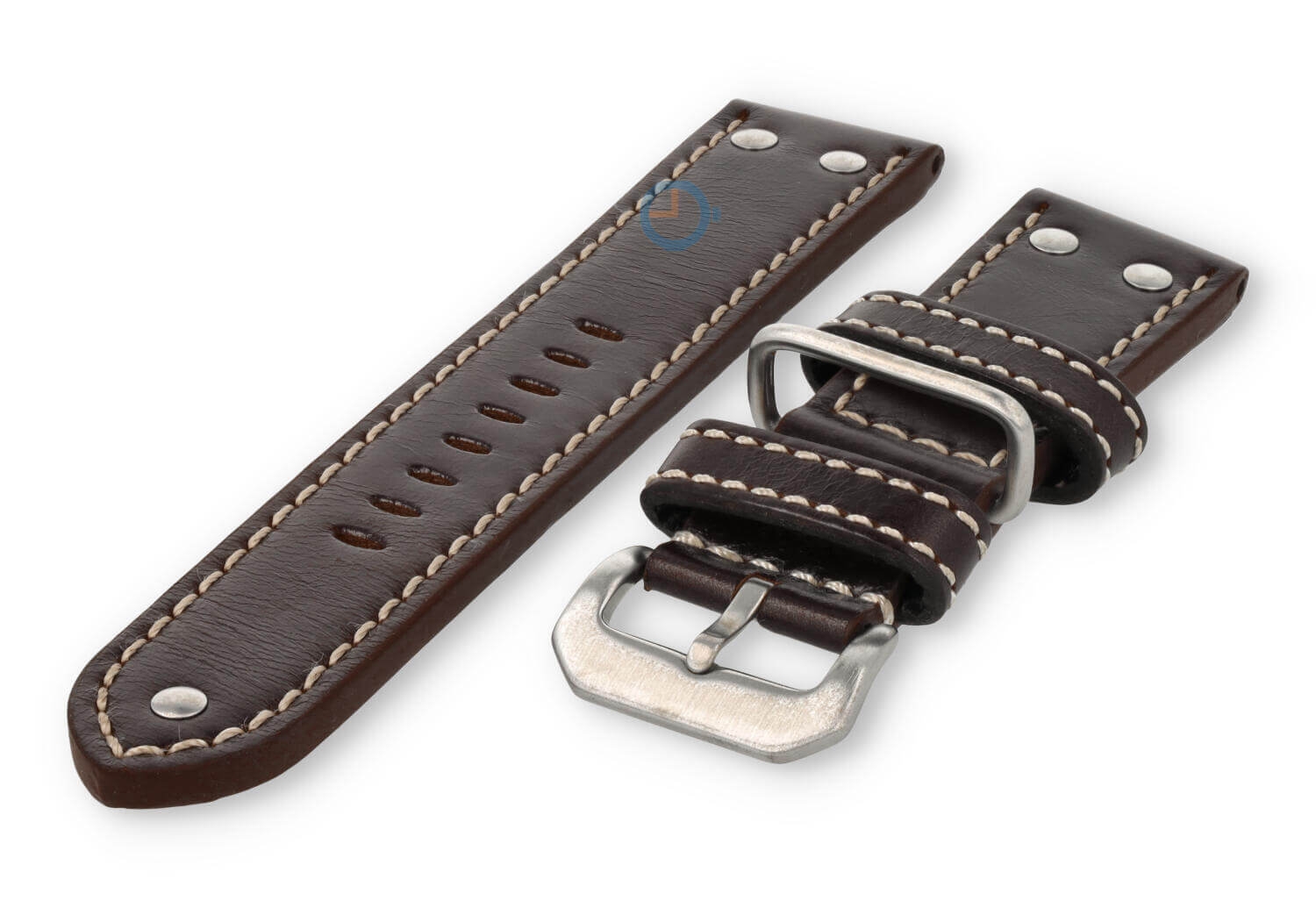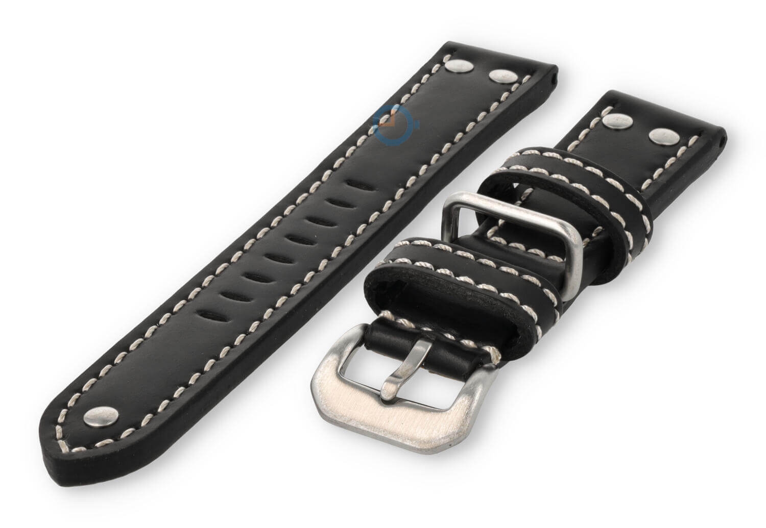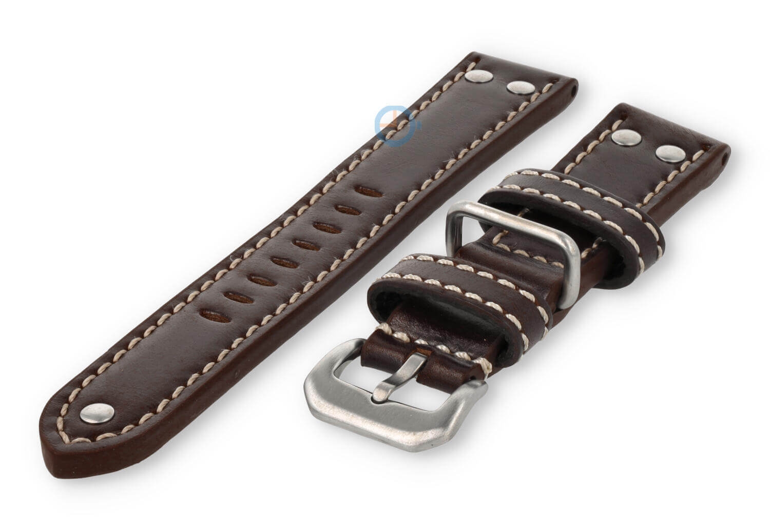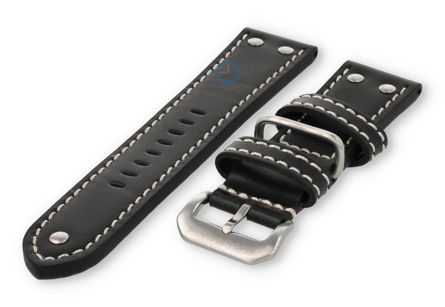 De horlogeband heeft maarliefst 3 lugs. Twee van leer en ?n van staal. Hierdoor blijft de band altijd op z'n plek tijdens het dragen. De band heeft ook gave staalnieten van roestvrijstaal, voor die echte vintage Flieger-stijl.