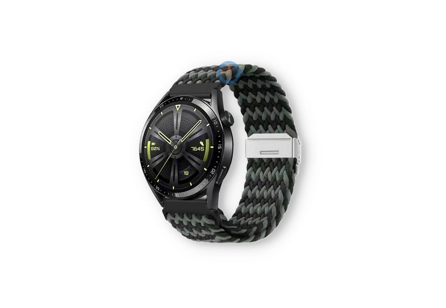 22mm, zwart/groen met wave-motief elastisch stoffen horlogebandje met quick switch. De perfecte accessoire voor bijvoorbeeld je favoriete workouts en crossfit.