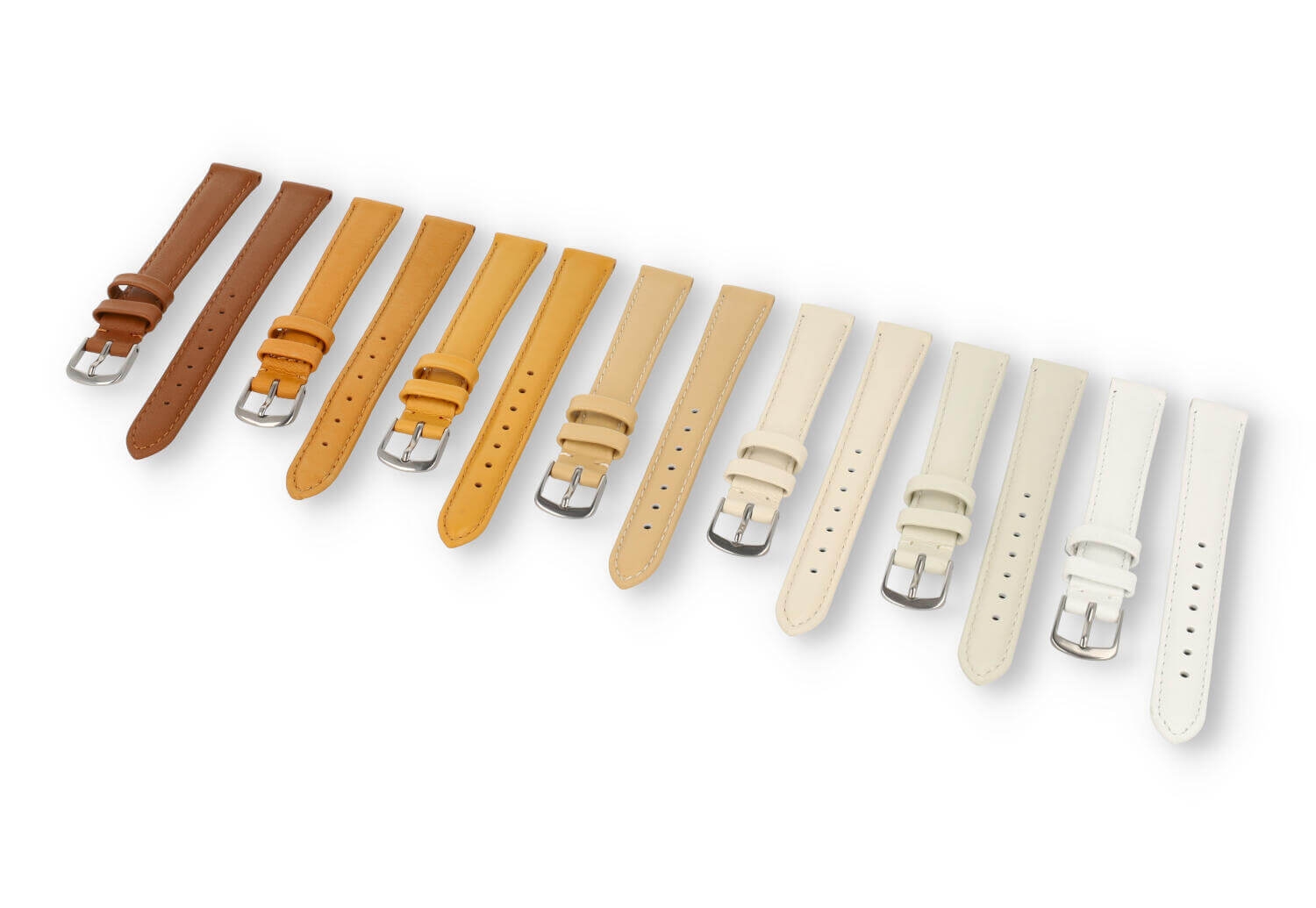 Deze glad leren band is 14mm breed en heeft een rechte, universele aanzet. Je plaatst dit horloge met pushpinnen eenvoudig zelf aan je horloge.