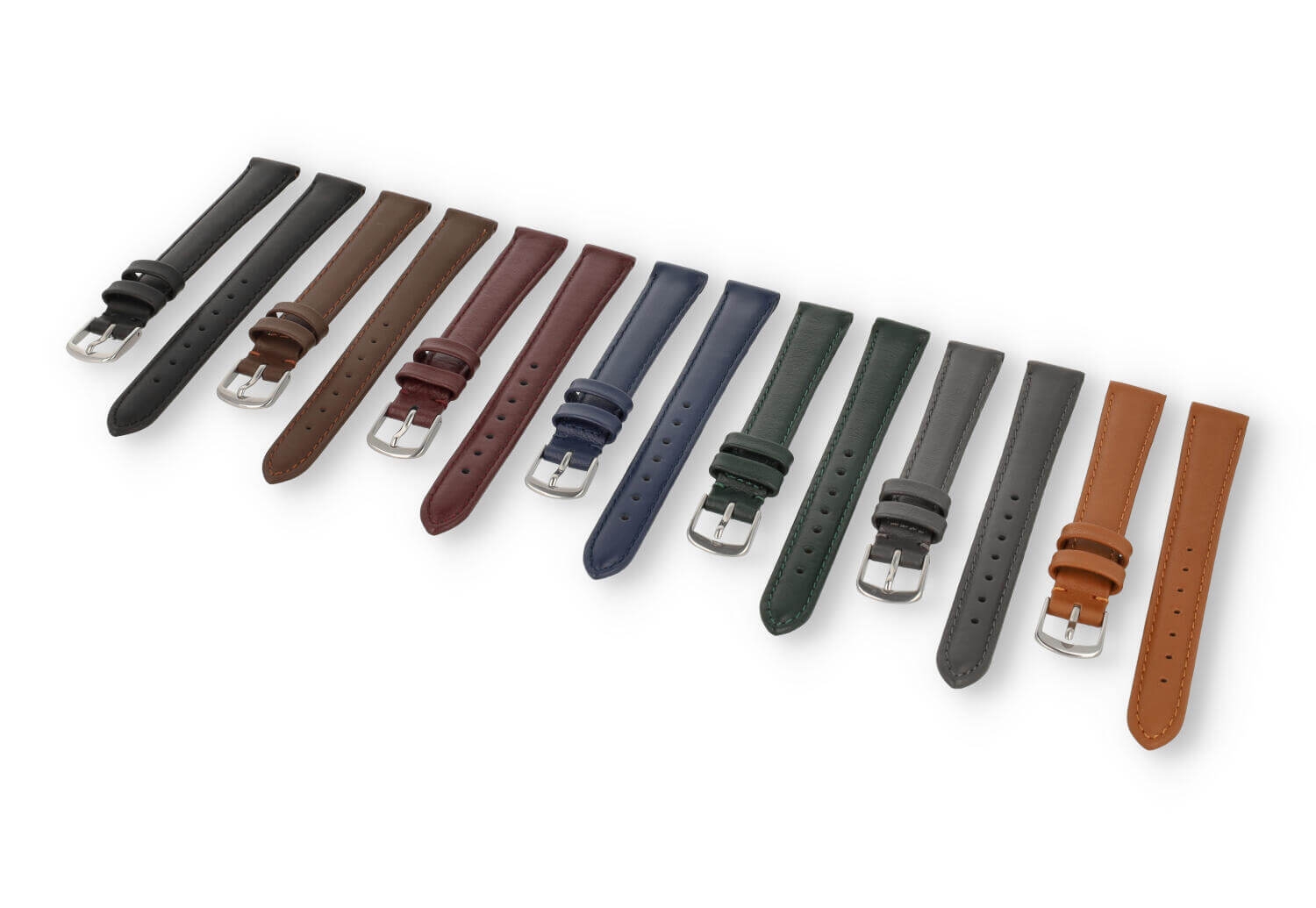 Deze glad leren band is 16mm breed en heeft een rechte, universele aanzet. Je plaatst dit horloge met pushpinnen eenvoudig zelf aan je horloge.
