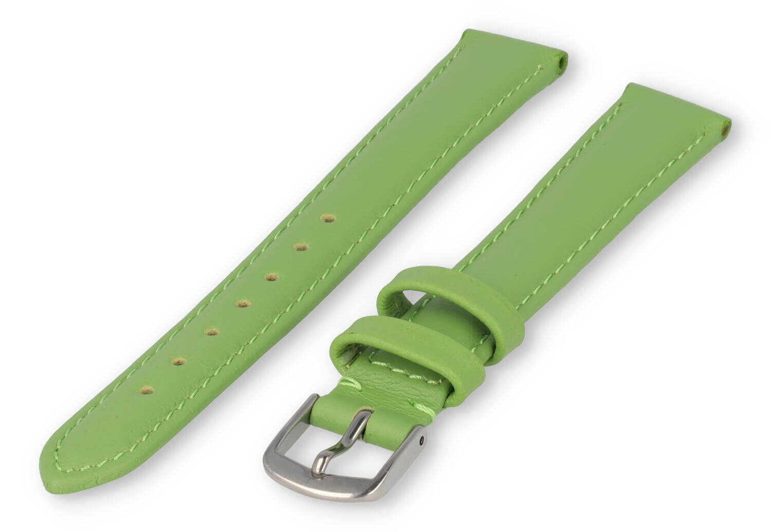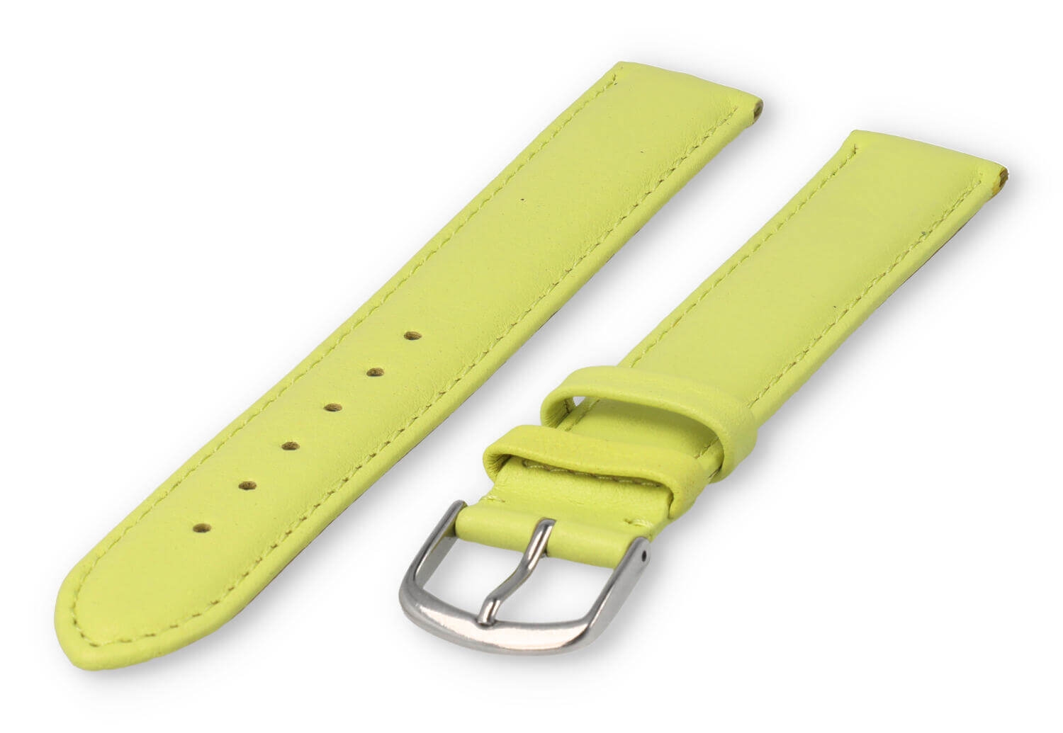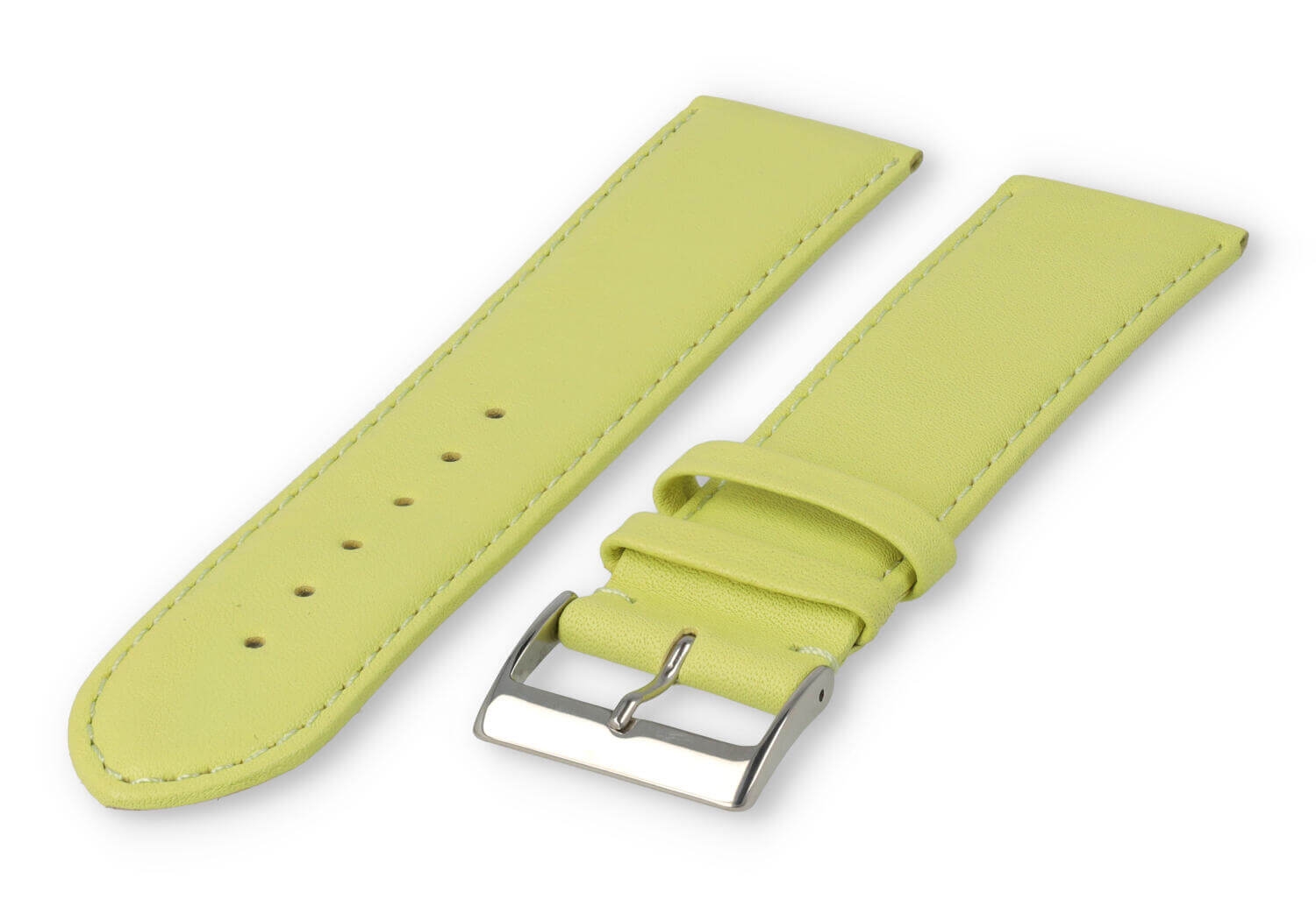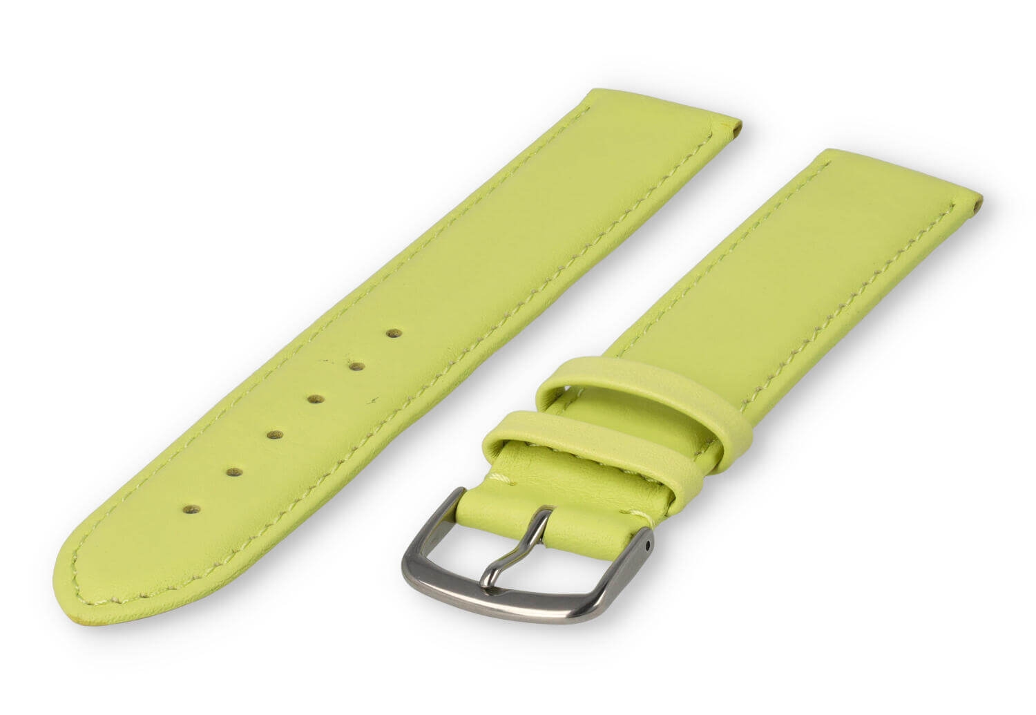 28mm horlogeband van glad leer - kleur: limoen. Een mooie effen horlogeband van kalfsleer. De fijne stiksels in deze band zijn meegekleurd waardoor de band echt effen kleurt. Dit horlogebandje is maar liefst beschikbaar in 32 verschillende kleuren. Zo vind je altijd een perfect match.