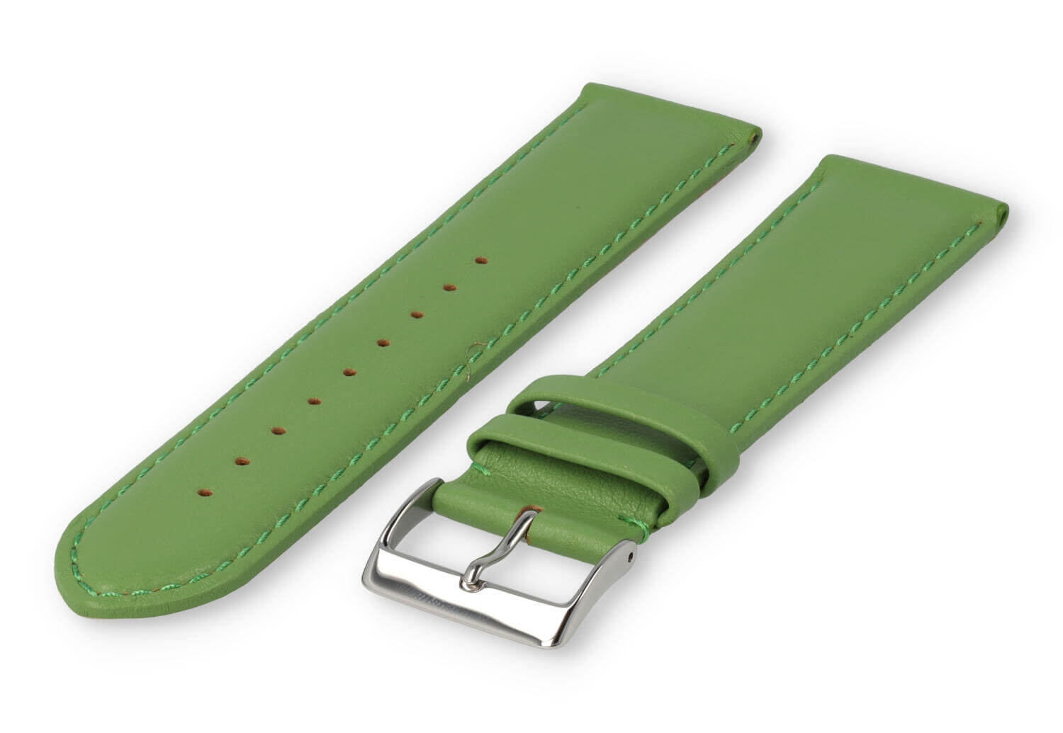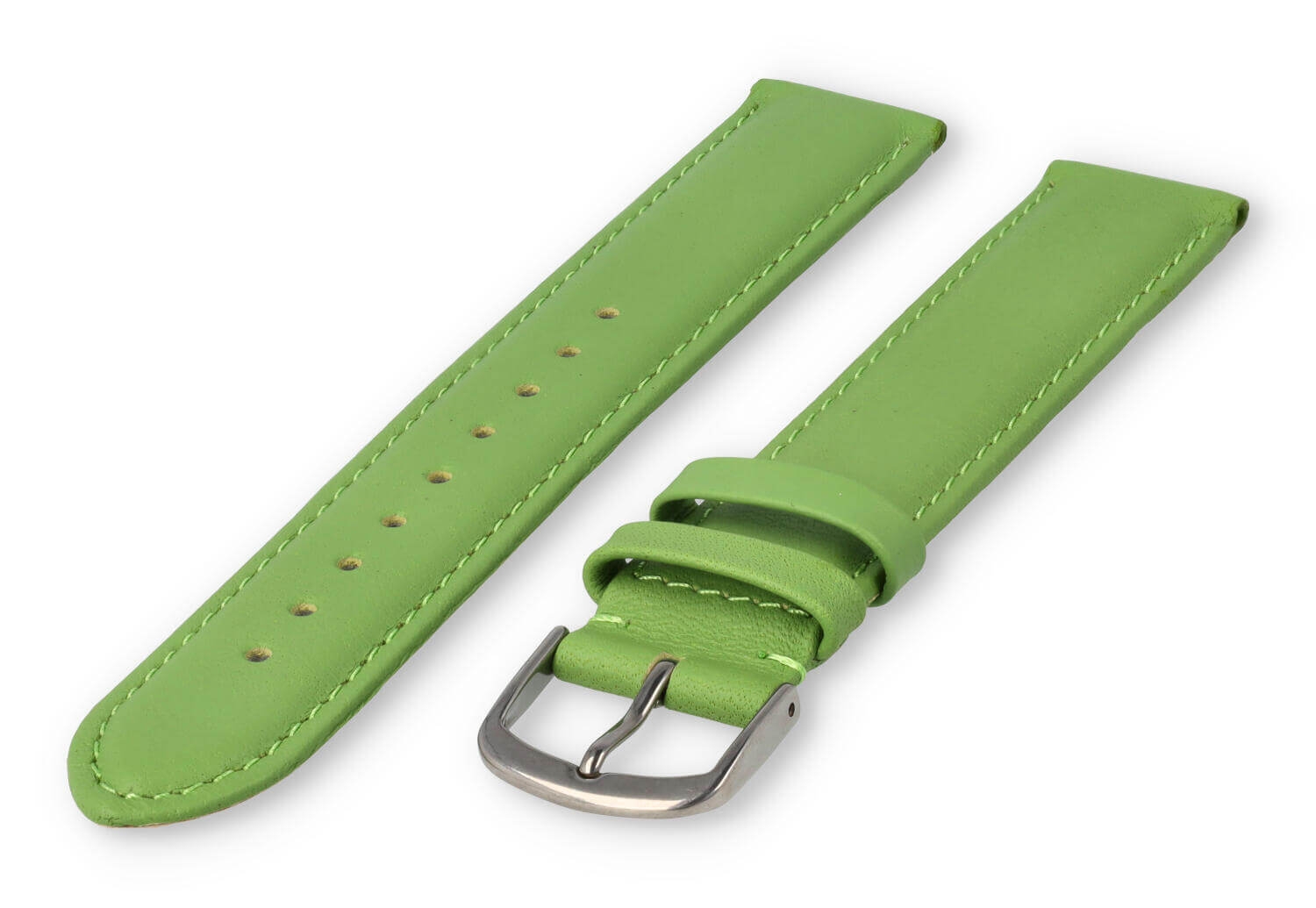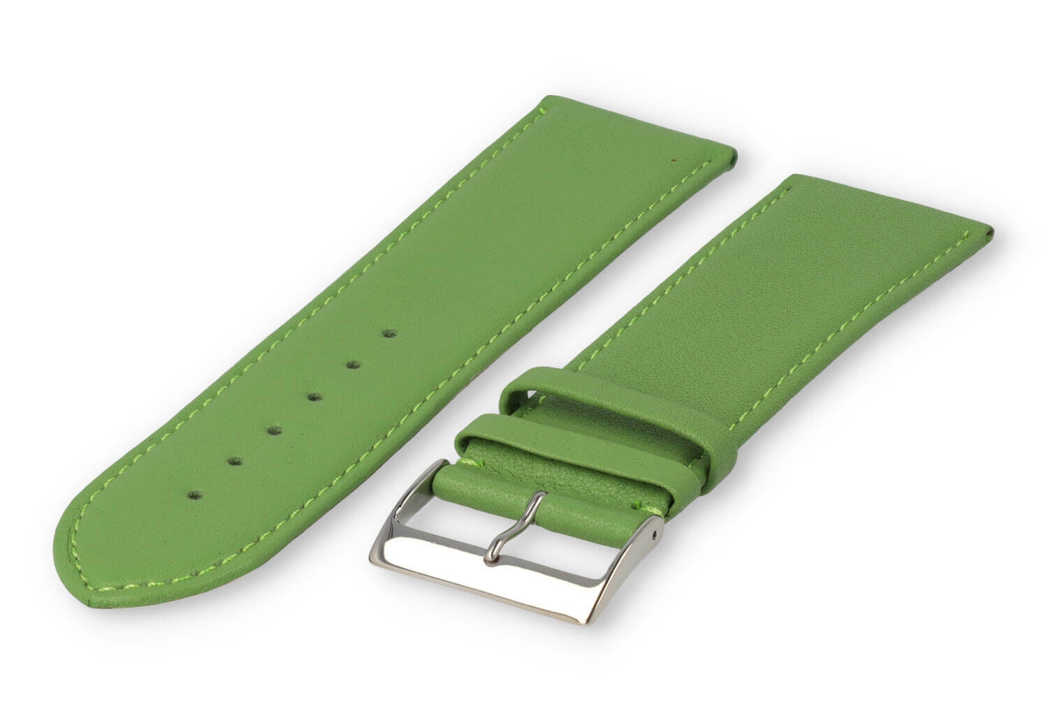 28mm horlogeband van glad leer - kleur: limoen. Een mooie effen horlogeband van kalfsleer. De fijne stiksels in deze band zijn meegekleurd waardoor de band echt effen kleurt. Dit horlogebandje is maar liefst beschikbaar in 32 verschillende kleuren. Zo vind je altijd een perfect match.