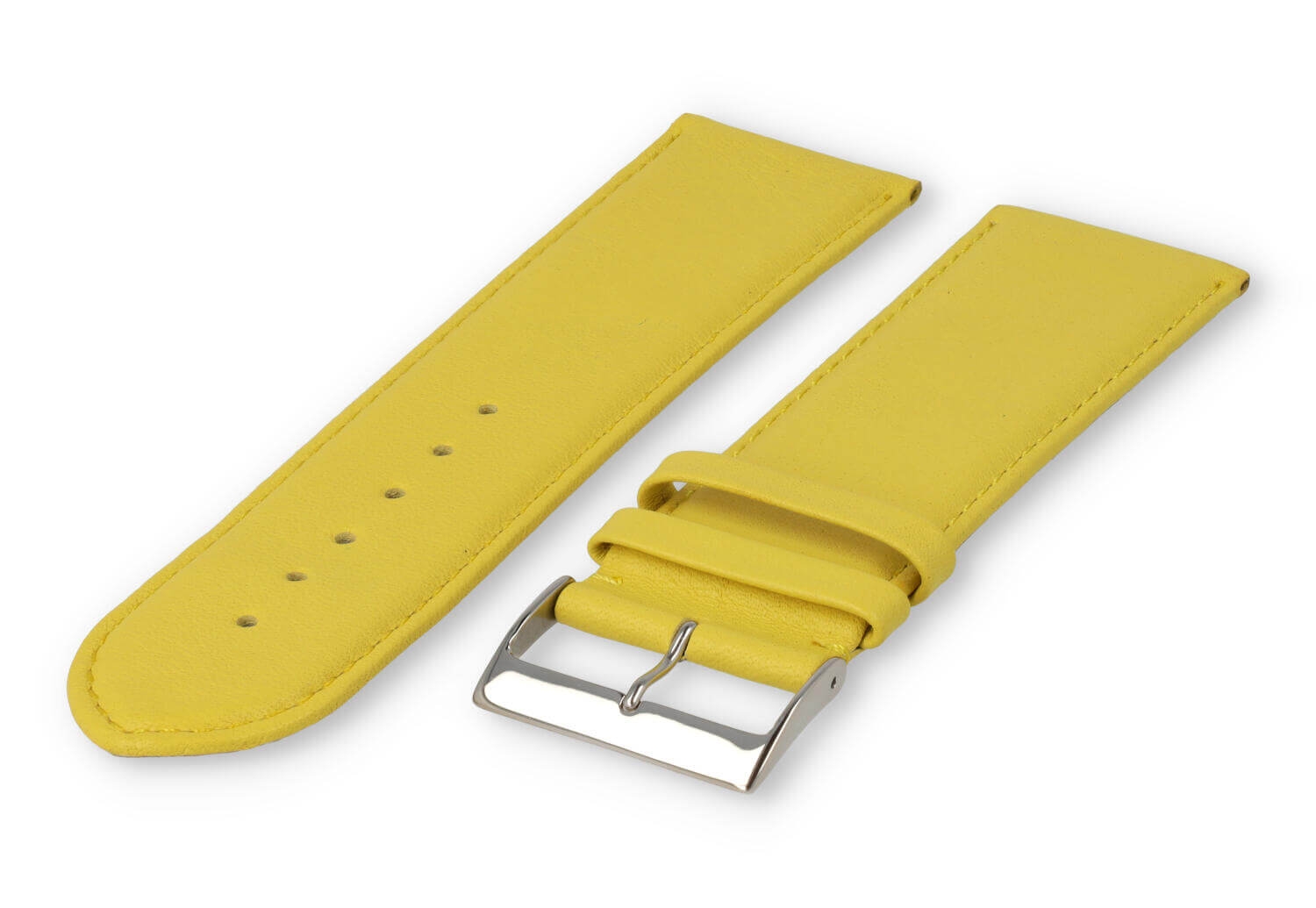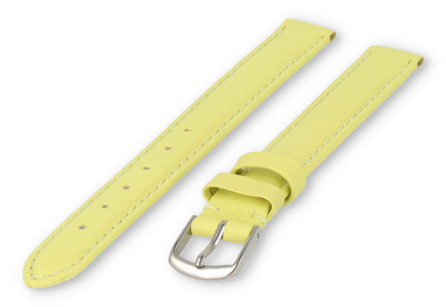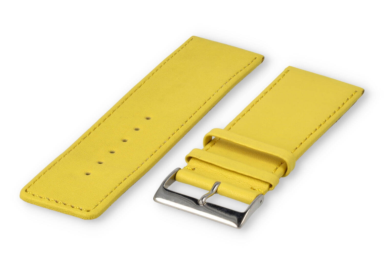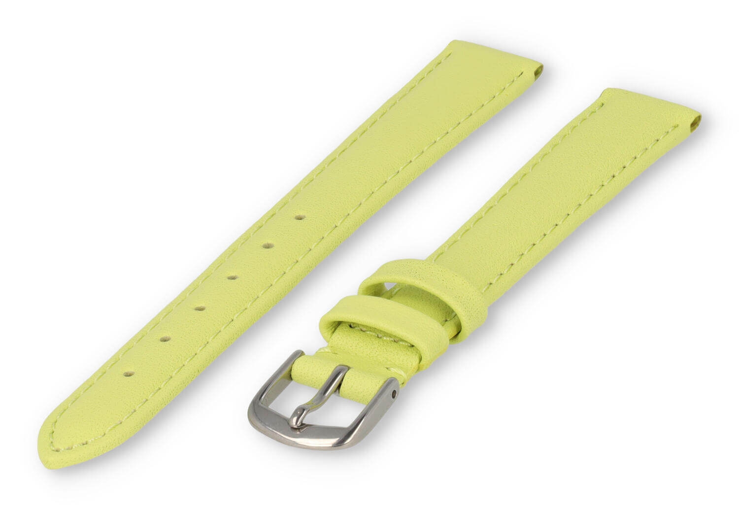 28mm horlogeband van glad leer - kleur: limoen. Een mooie effen horlogeband van kalfsleer. De fijne stiksels in deze band zijn meegekleurd waardoor de band echt effen kleurt. Dit horlogebandje is maar liefst beschikbaar in 32 verschillende kleuren. Zo vind je altijd een perfect match.