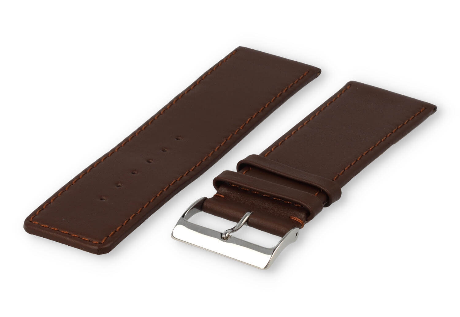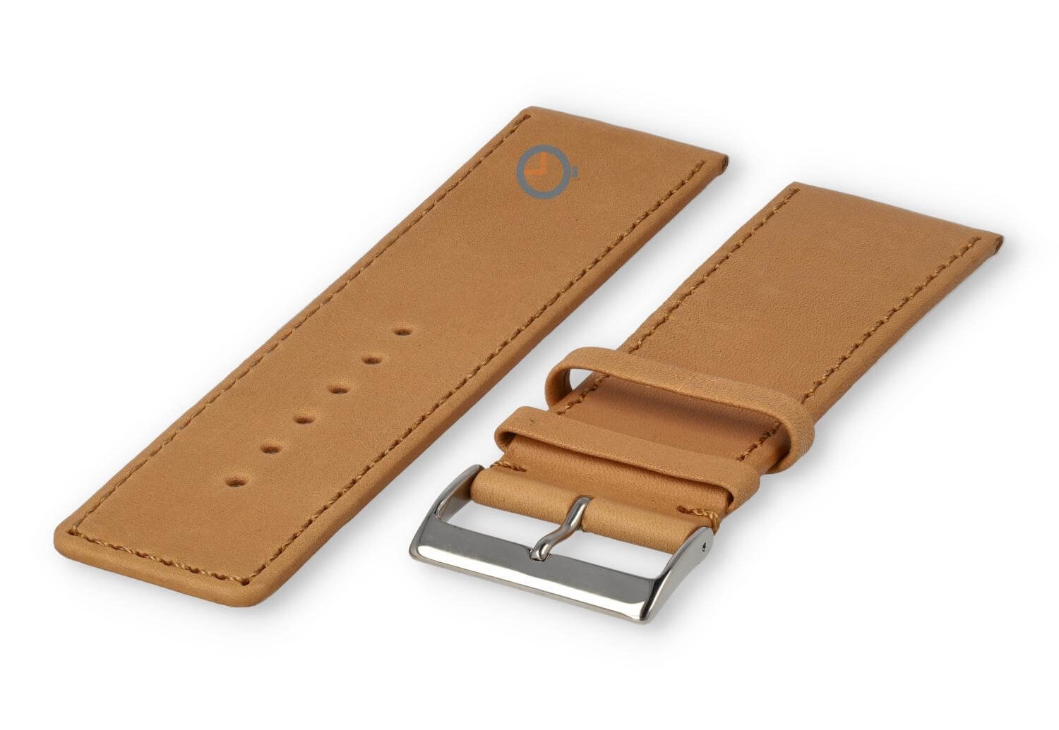 Deze glad leren band is 28mm breed en heeft een rechte, universele aanzet. Je plaatst dit horloge met pushpinnen eenvoudig zelf aan je horloge.
