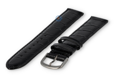 XL horlogeband leer met krokoprint - 16mm - zwart. Eenvoudig luxe horlogebandje in effen kleur. De horlogeband heeft een kalfsleder nubuk onderkant voor het ultieme draagcomfort. Deze horlogeband van echt leer is 16mm breed. Je ontvangt dit leren bandje inclusief de roestvrijstalen gespsluiting in zilverkleur.