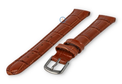 Kleine horlogeband van leer - 14mm - bruin. Een effen gekleurd bandje met luxe croco-print voor d? klassieke look. Maak je horloge weer compleet met deze betaalbare horlogeband. Deze horlogeband van echt leer is 14mm breed en loopt terug naar 12mm. Je ontvangt dit leren bandje inclusief de roestvrijstalen gespsluiting in zilverkleur.