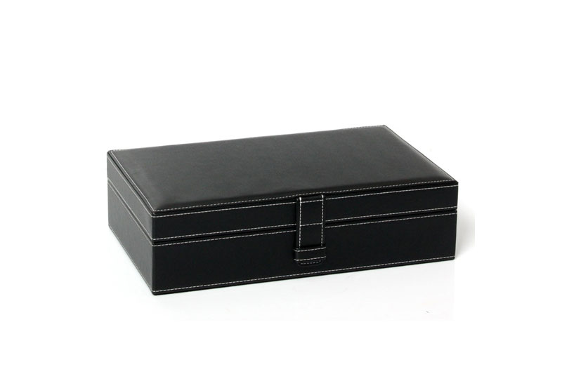 Gisoni Parata zwart. Deze prachtige horlogekist biedt plaats aan 10 horloges. Het zwarte leer gecombineerd met witte stiksels geeft het geheel een stoere doch stijlvolle look. Verkrijgbaar in diverse kleuren.